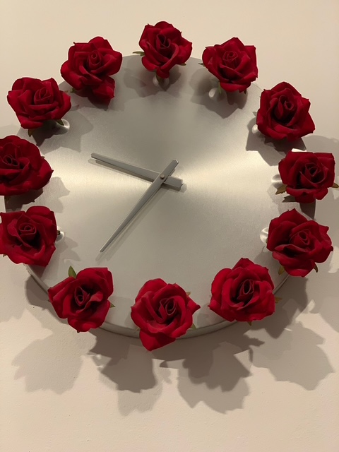 Un orologio romantico, composto da 12 bellissime rose rosse, è decisamente impegnativo. Posizionatelo, quindi, su una parete bianca e neutra in modo da ravvivare l'intero ambiente |